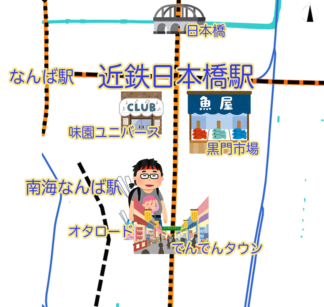 元々、裏なんばは倉庫や家具屋さんが多かったのですが、某飲食店の店長さんが「この辺をもっと盛り上げていこう」とのことで裏なんばの飲食店マップを作成しました。